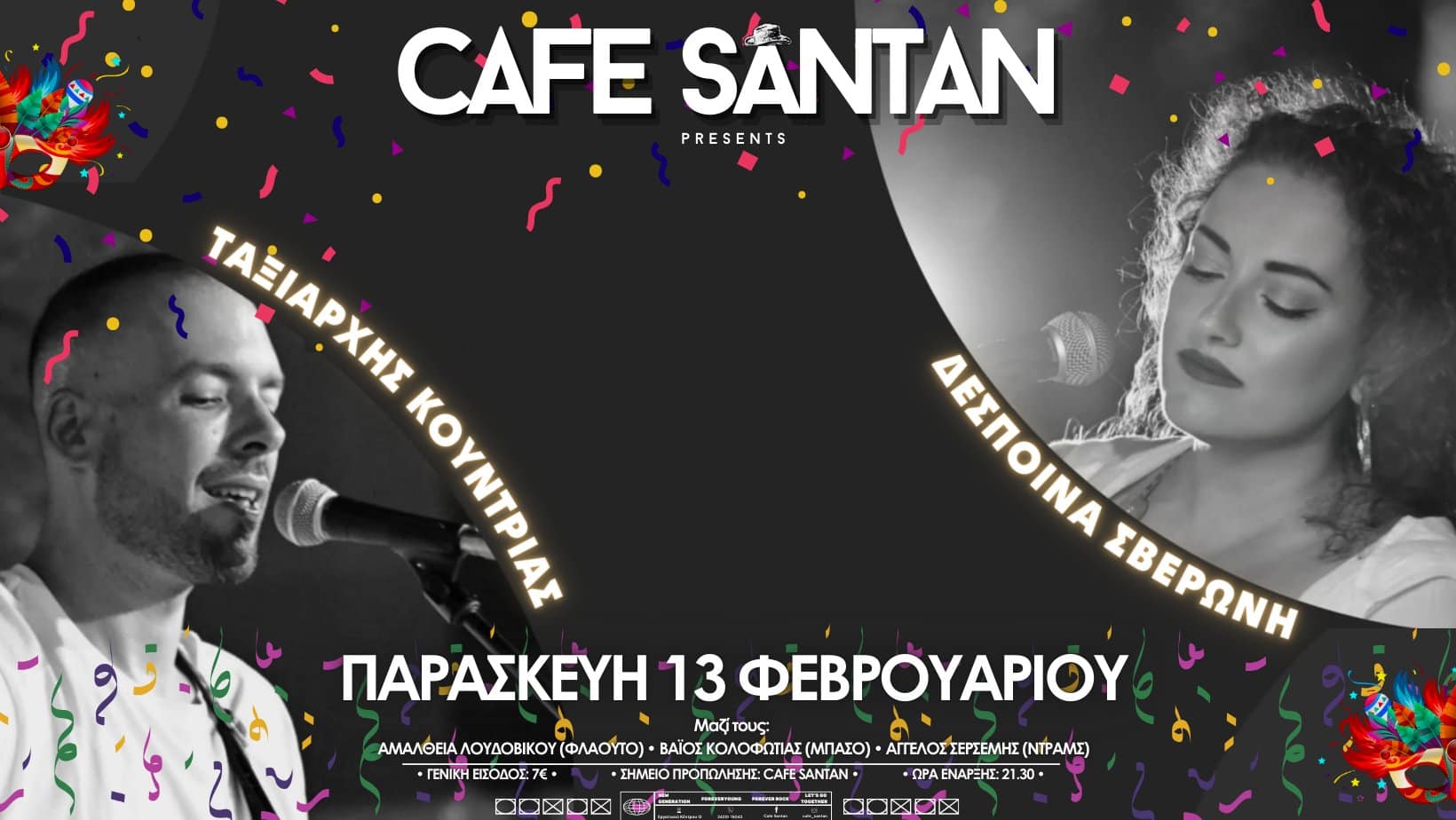 Μετά την πρώτη τους εμφάνιση για το 2026, στο πιο εμβληματικό Rock Bar της πόλης, Cafe Santan, η Δέσποινα Σβερώνη και ο Ταξιάρχης Κούντριας ανεβαίνουν ξανά στη σκηνή για ένα Live γεμάτο ένταση, συναίσθημα και κοινή ανάσα με τον κόσμο.